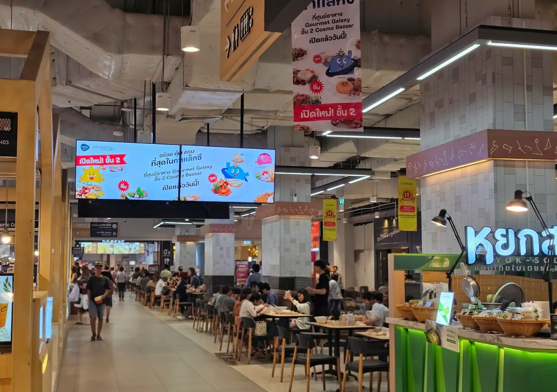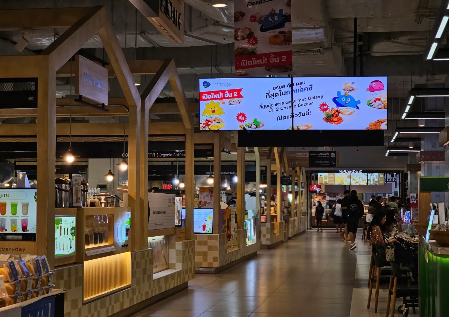 ขอเชิญชวนทุกท่านแวะมาเยี่ยมชม Cosmo Bazaar เพื่อสัมผัสกับบรรยากาศการช้อปปิ้งที่ทันสมัย พร้อมชมความโดดเด่นของ Samsung Digital Signage ขนาด 98″ ที่ Gourmet Galaxy Food Court และ Digital Menu Board ขนาด 65″ บริเวณทางเดิน มาสัมผัสประสบการณ์ดิจิทัลที่ก้าวล้ำไปอีกขั้นได้ที่ Cosmo Bazaar!