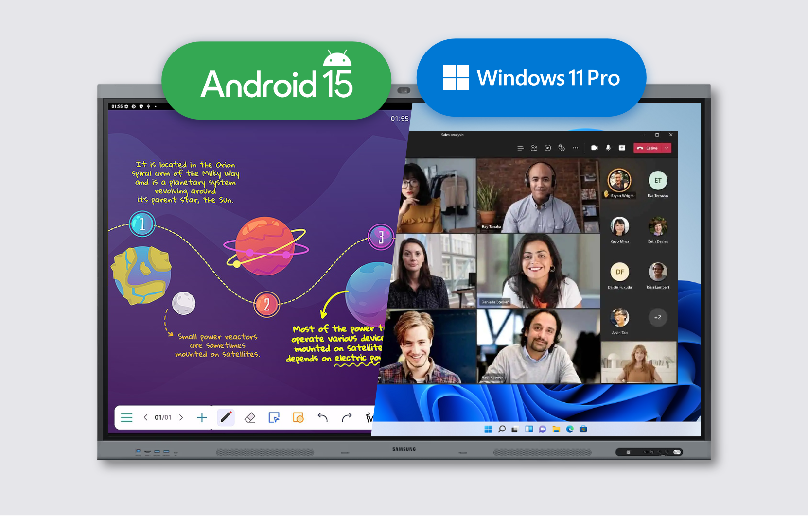 สามารถ Switch ระหว่าง Android 15 OS เพื่อการเขียนที่ Smooth หรือ Windows 11 Pro เพื่อการประชุมที่เสถียร